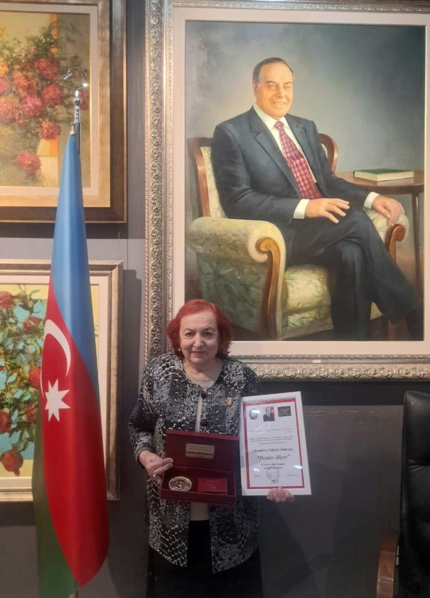 Media Araşdırma Mərkəzi və Azər.KİVİHİ tərəfindən Elm və Təhsil sahəsində göstərdiyi xidmətləri nəzərə alınaraq Dilçilik İnstitutunin alimi ,filologiya üzrə fəlsəfə doktoru Axundova Gülşən İslam qızı Heydər Əliyev irsinin təbliğində fəal iştirak etdiyinə görə."H.Əliyev" diplomu və medalına layiq görülüb.