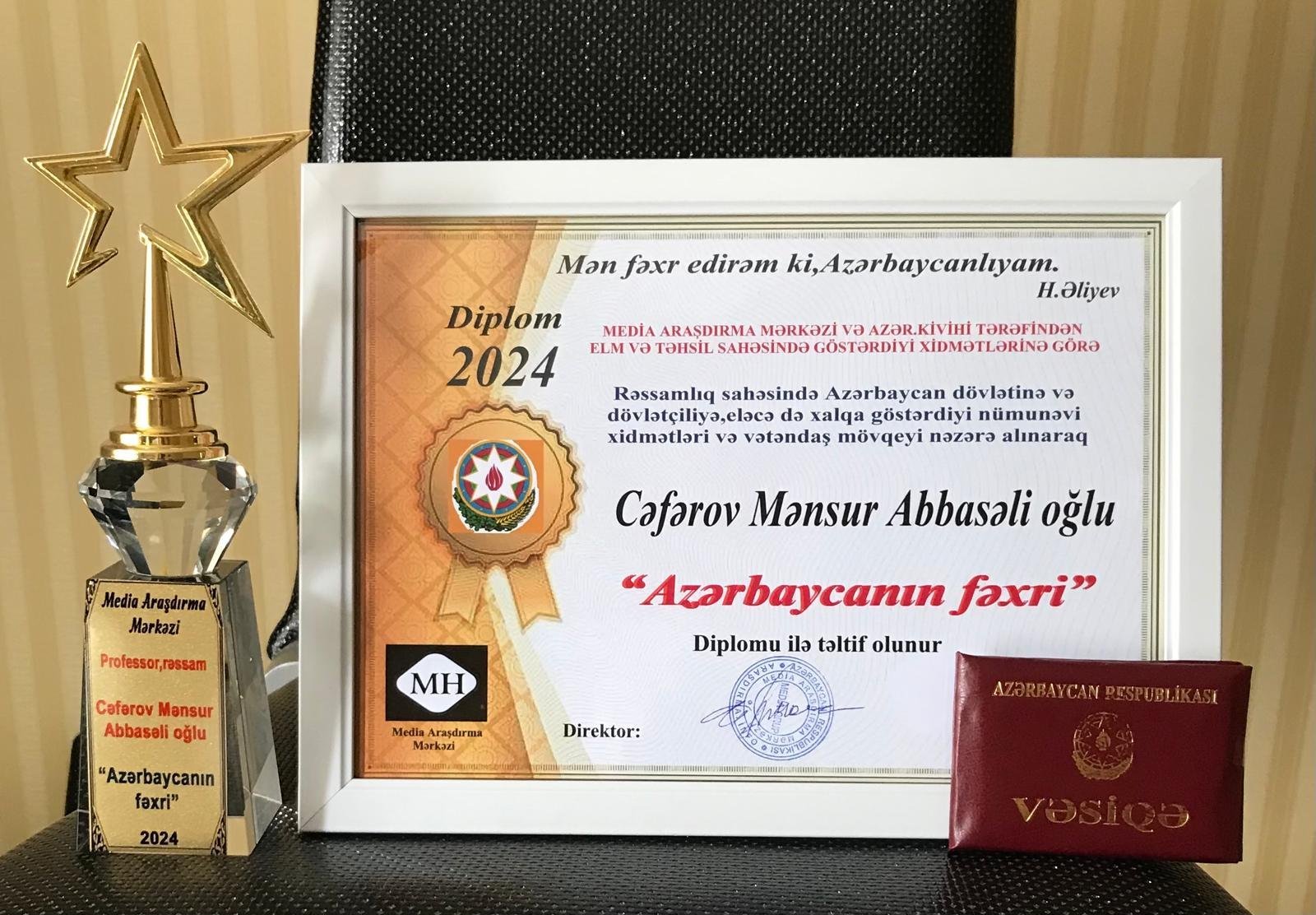 Sənəti ilə xariqələr yaradan professor Media Araşdırma Mərkəzi tərəfindən "Azərbaycanın fəxri" ali media mükafatına layiq görülüb.