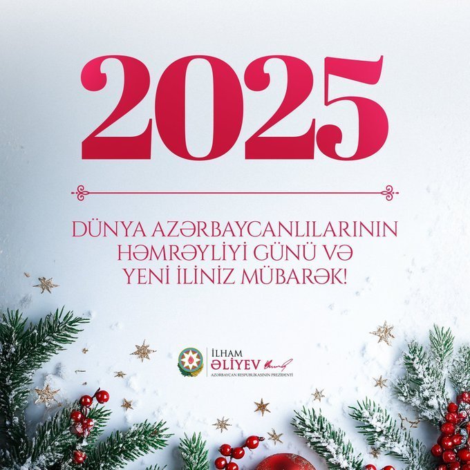 zərbaycan Prezidenti İlham Əliyev "X" sosial şəbəkəsindəki rəsmi hesabında 31 dekabr Dünya Azərbaycanlılarının Həmrəyliyi Günü münasibətilə paylaşım edib.