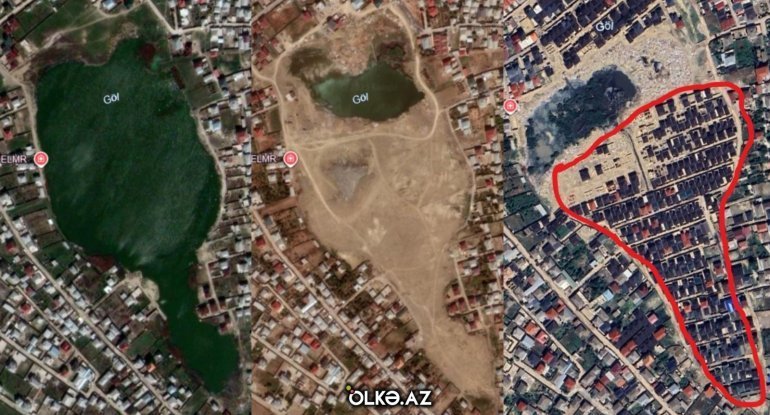 Resmixeber.org xəbər verir ki, bu barədə Aqil Tağıyev adlı şəxs sosial şəbəkələrdə paylaşım edib. O, su çəkilən ərazilərdə gölün doldurularaq evlər tikildiyini söyləyib: