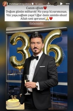 Resmixeber.org xəbər verir ki, ifaçı oğlunu 36 yaşının tamam olması münasibəti ilə təbrik edib.
